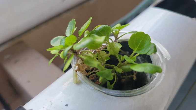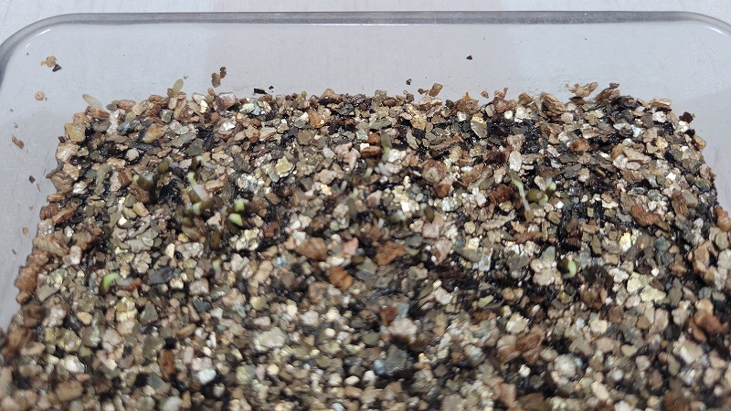 20251003水耕栽培 水耕栽培 X Facebook はてブ Pocket LINE コピー 2025.10.03 本日も曇りの朝。日差しは少しあるも大分少し安い朝となっている。本日のバーミキュライト床は。。。 やはり、2種類のうち1種類のみ発芽。大量に目が出ている。 クレソンは、根っこの藻をとってやったら、順調に生育し始めた。