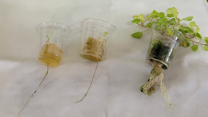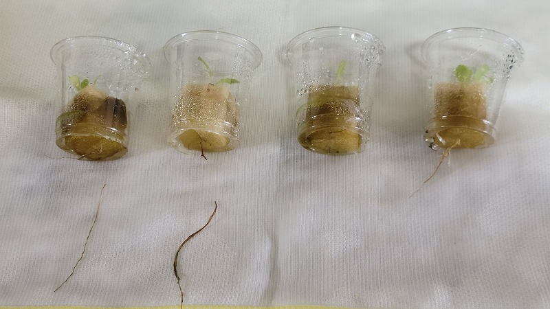 緊急事態。レタスを引き上げると、根っこが茶色になっている。いつものように藻が付着していると思い、洗浄したが、根っこがちぎれる状況。根腐れを起こしているよう。