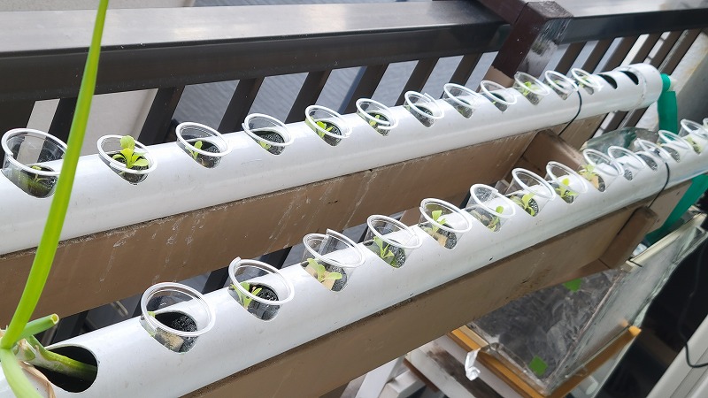 水耕栽培本日、曇りの朝。昨夜は最寄りのJR駅の気になる居酒屋で夕食をいただいた。刺身、串焼き、フライいずれも旨い。気が付いたのは日本酒を飲むと夜の睡眠に悪影響を与えることが分かった。この年にして、、、、さて、レーンの状況だが、液肥を追加してどうなったか。。。